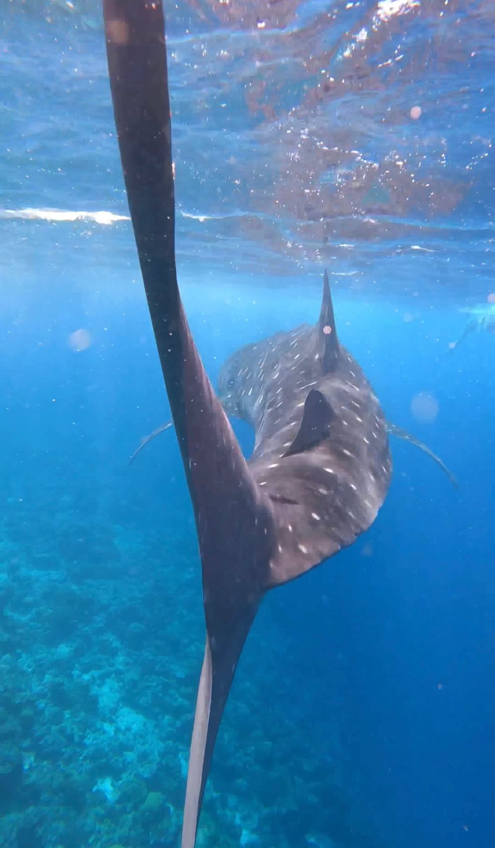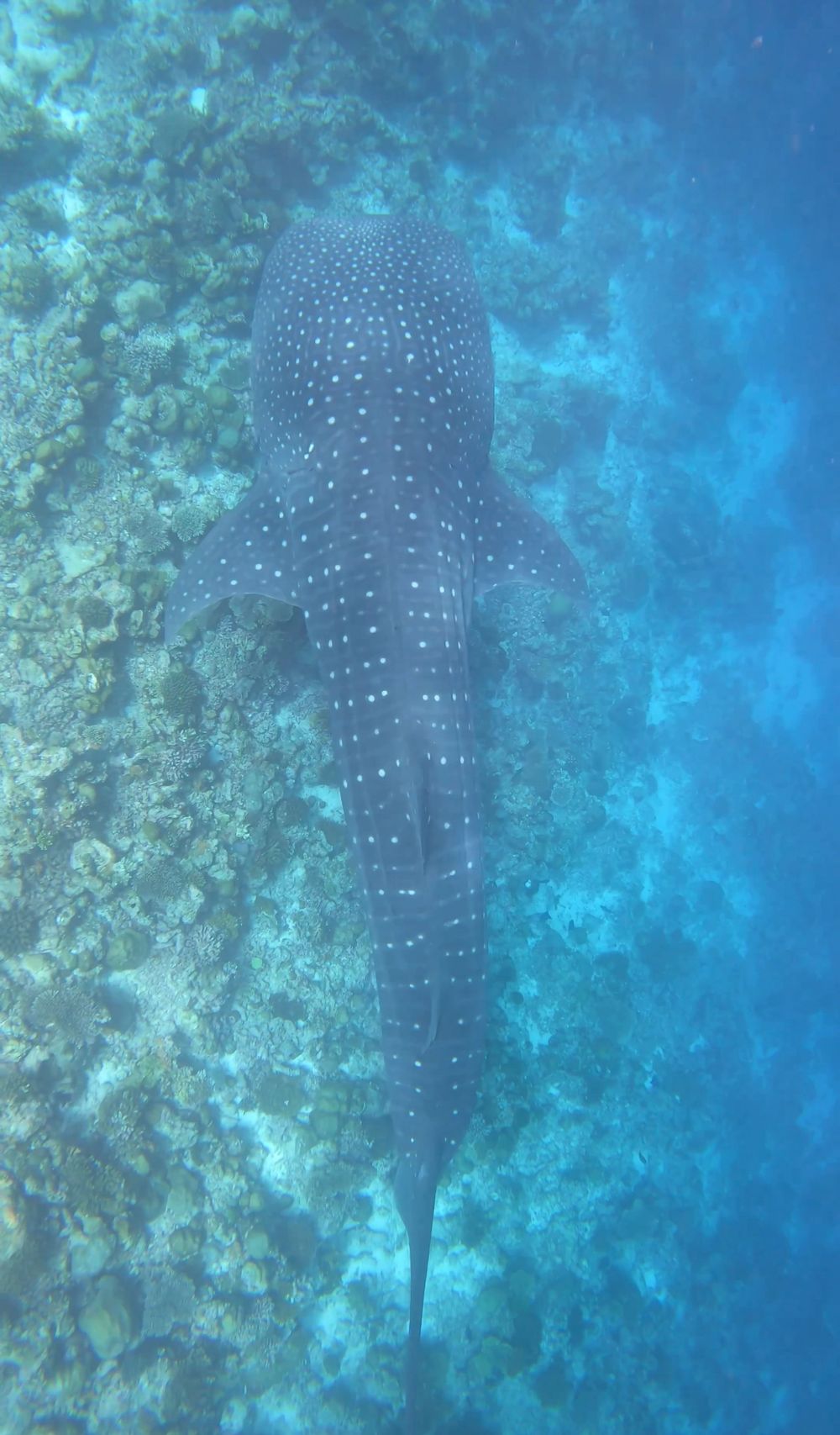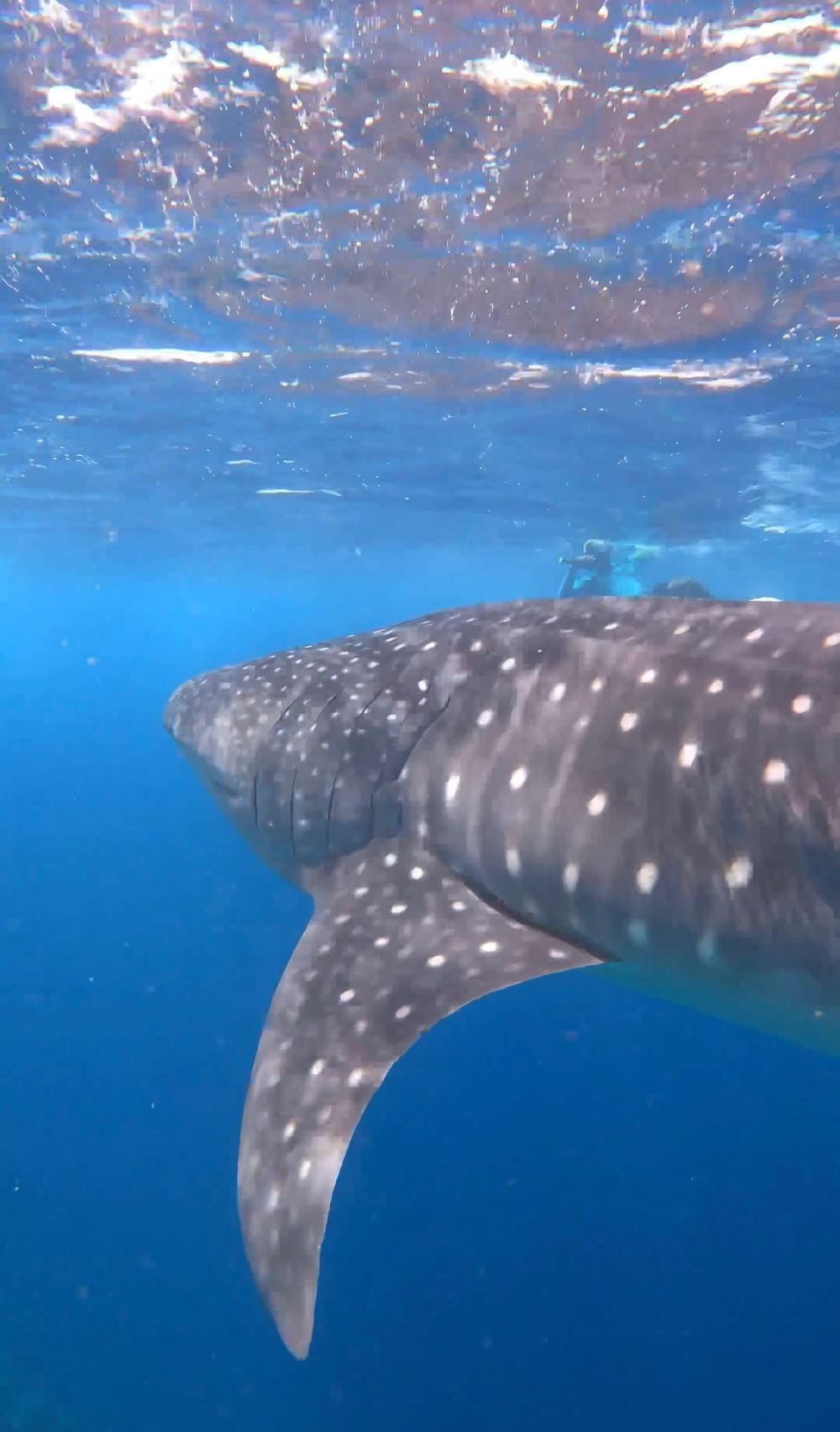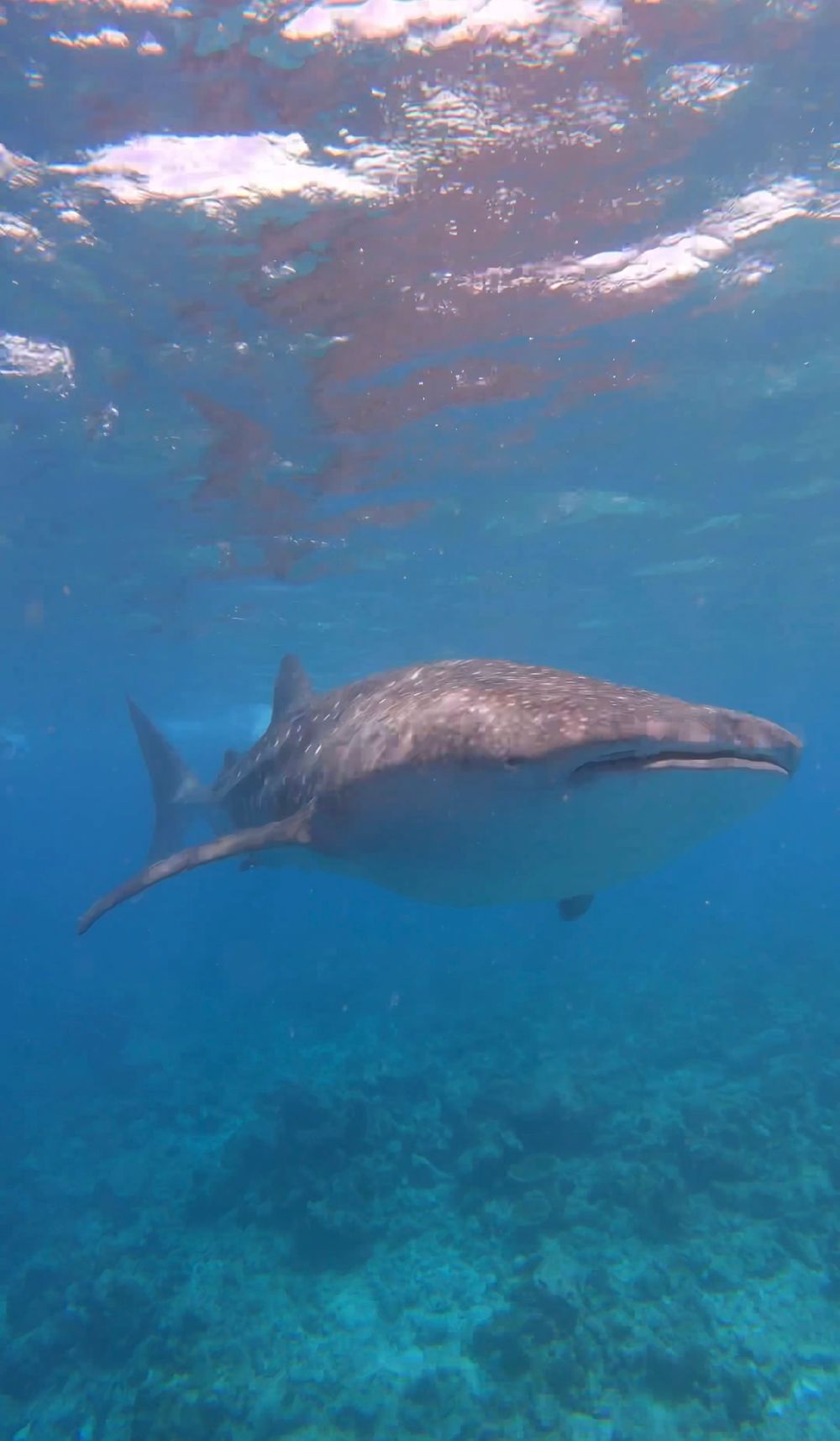 Wir haben klare Verhaltensregeln bekommen in Bezug auf Abstand zu den Tieren und unserem Verhalten im Wasser. 3 Stunden lang haben wir auf dem Wasser gesucht und wollten schon fast zurückfahren zum Resort. Dann ging plötzlich alles ganz schnell. Anweisung vom Guide: Flossen an, Maske auf und ab ins Wasser dem Meeresbiologen hinterher. Das Gefühl, den großen, majestätischen Hai auf uns zuschwimmen zu sehen, dann neben und über ihm zu schwimmen und ihn ein Stück auf seinem Weg durchs Meer zu begleiten, war ein unbeschreibliches Erlebnis. Eine Unterwasserbegegnung der ganz besonderen Art. Die riesige Schwanzflosse langsam schwingen zu sehen, während der Walhai im Wasser vor oder unter einem schwimmt, ist ein Anblick, den man so schnell nicht vergisst.