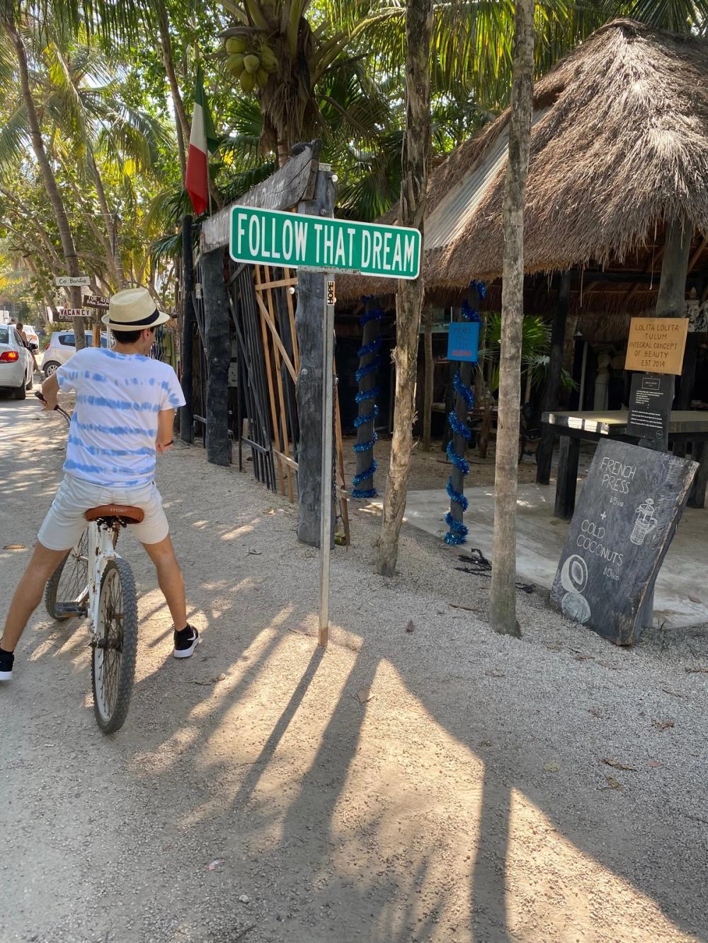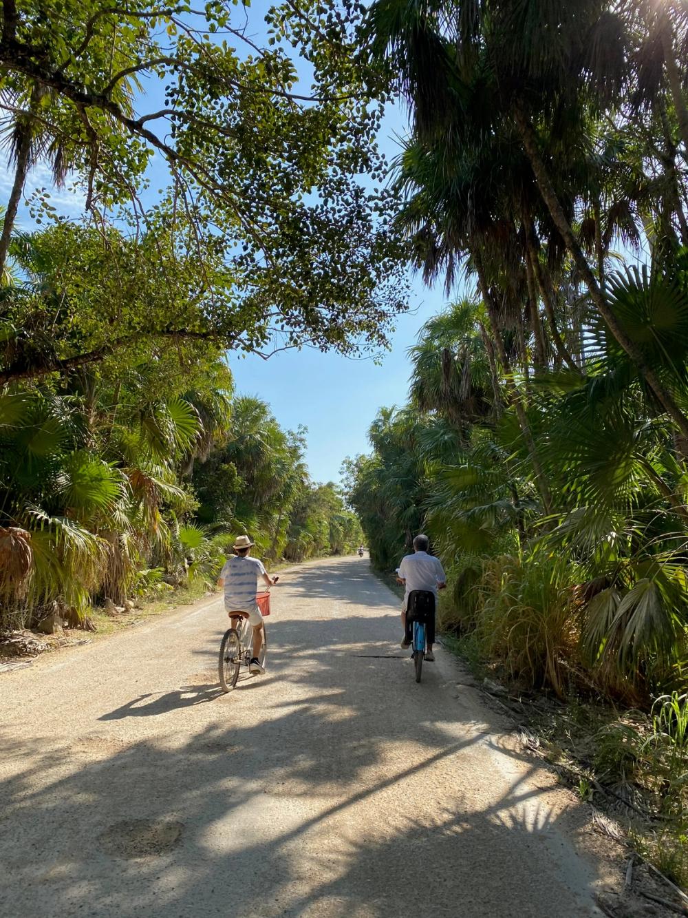 In Tulum Beach haben wir uns Fahrräder geliehen. Das empfehle ich jedem und wir haben es genossen, entschleunigt in so einer Kulisse jeden Tag Rad zu fahren. Jeden Morgen nach dem Frühstück ging es für uns auf Erkundungstour. Mal Richtung Süden, wo eine der schönsten Cenoten liegt, oder in den nahegelegenen Nationalpark. Auch Richtung Tulum, denn auf diesem Abschnitt liegt gefühlt ein Boho-Hoteltraum neben dem Anderen.