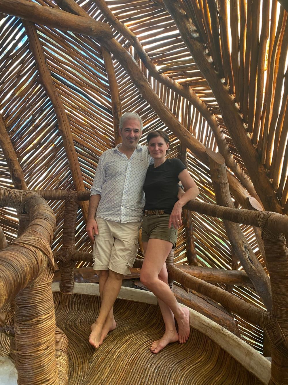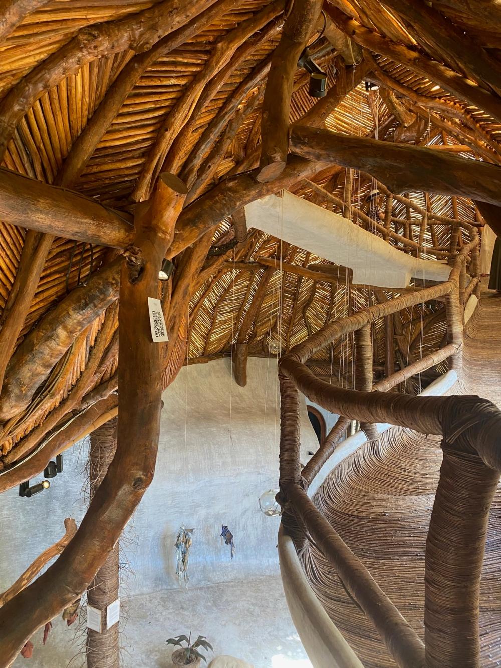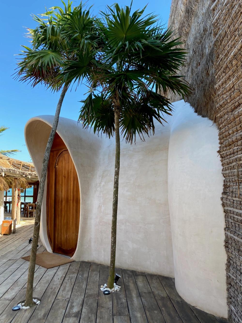 Ca. 1 Stunde mit dem Rad nördlich von unserem Hotel liegt das Hotel Azulik – bekannt aus Hochglanzmagazinen und social media, mit seinen Nestern hoch über den Palmen. Unser Ausflugstipp ist das daran angegliederte Museum Sferik. Für rund 20 Dollar Eintritt betritt man eine Szenerie, die jedem Architekturfan das Herz höherschlagen lässt.